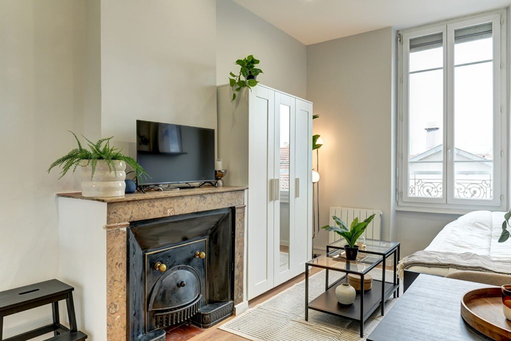 Situé au 55 rue Magenta 69100 dans un quartier calme et recherché de Villeurbanne, vous trouverez un superbe studio Premium de 18.86 m²nviron récemment refait à neuf, meublé, équipé et décoré avec goût.