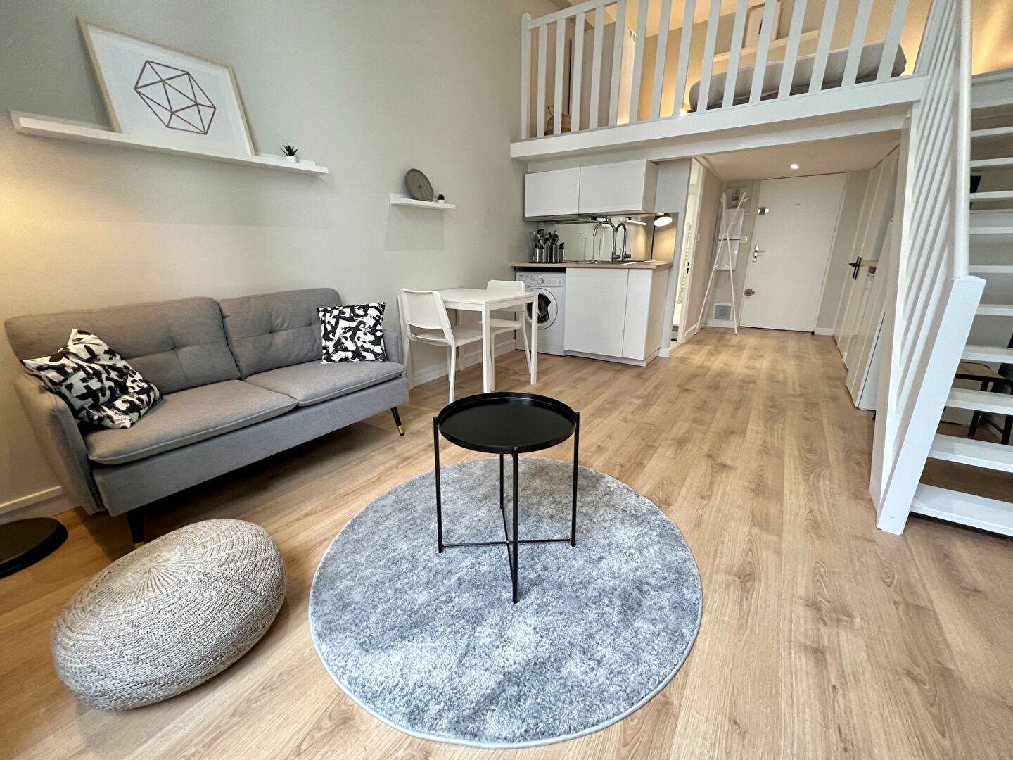 L’appartement est composé d’un espace séjour, d’une cuisine, une chambre en mezzanine, une salle d’eau et un WC indépendant.