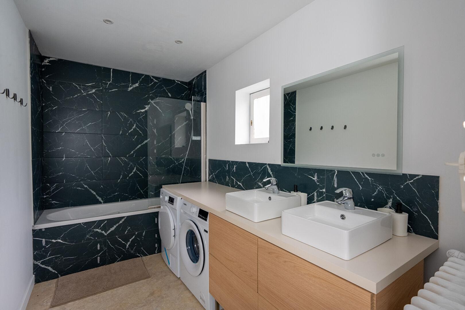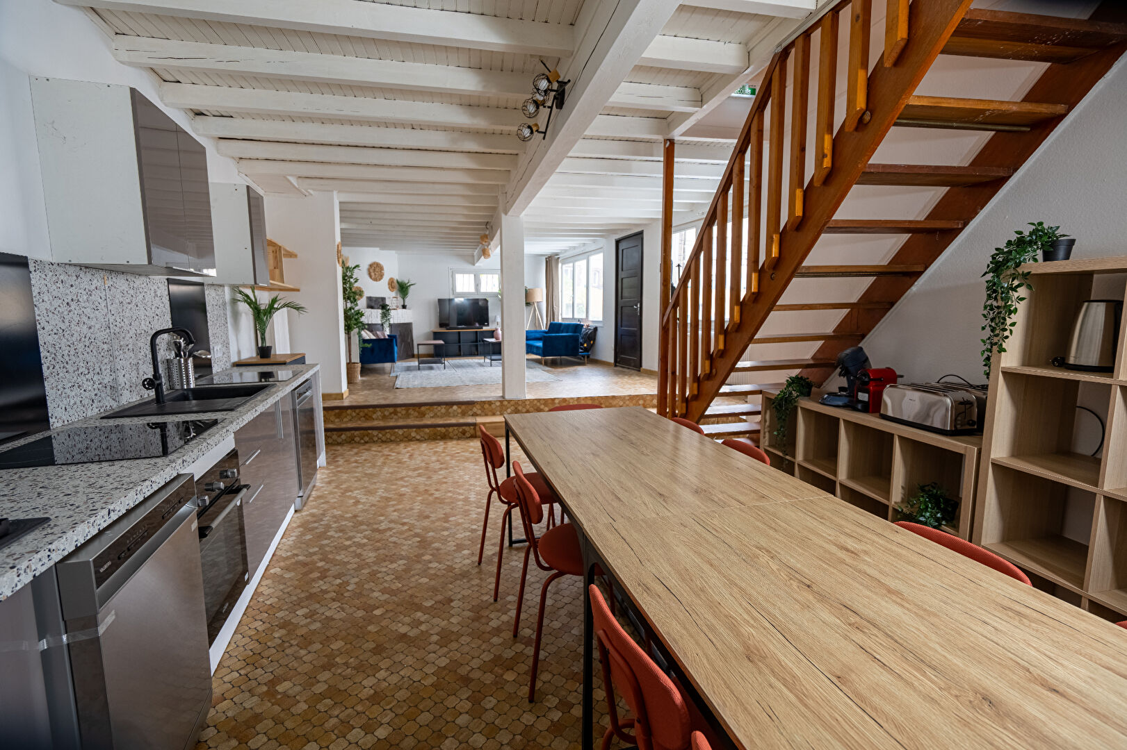 La maison est entièrement rénovée, meublée et équipée : 2 réfrigérateurs, four, 2 micro-ondes, 2 lave-vaisselles, 2 plaques à induction, 2 machines à café, tireuse à bière, bouilloire, grille-pain, 3 lave-linges, 1 sèche-linge et internet fibre optique haut débit. Chaque chambre est équipée d’un lit de 140 cm, d’espaces de rangement et d’un bureau architecte vitré, rétroéclairé et réglable.