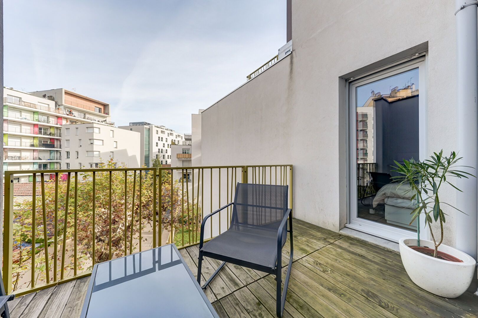 L’appartement est composé d’un espace séjour qui donne accès à une grande terrasse. Cuisine équipée ouverte sur le séjour , une chambre avec placard donnant accès sur la terrasse, une salle d’eau et WC séparé.