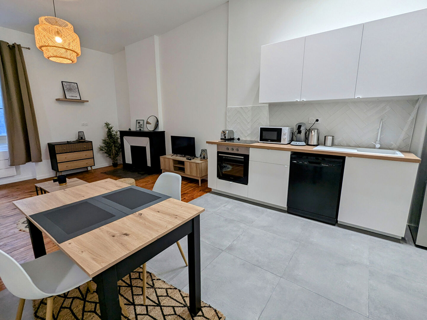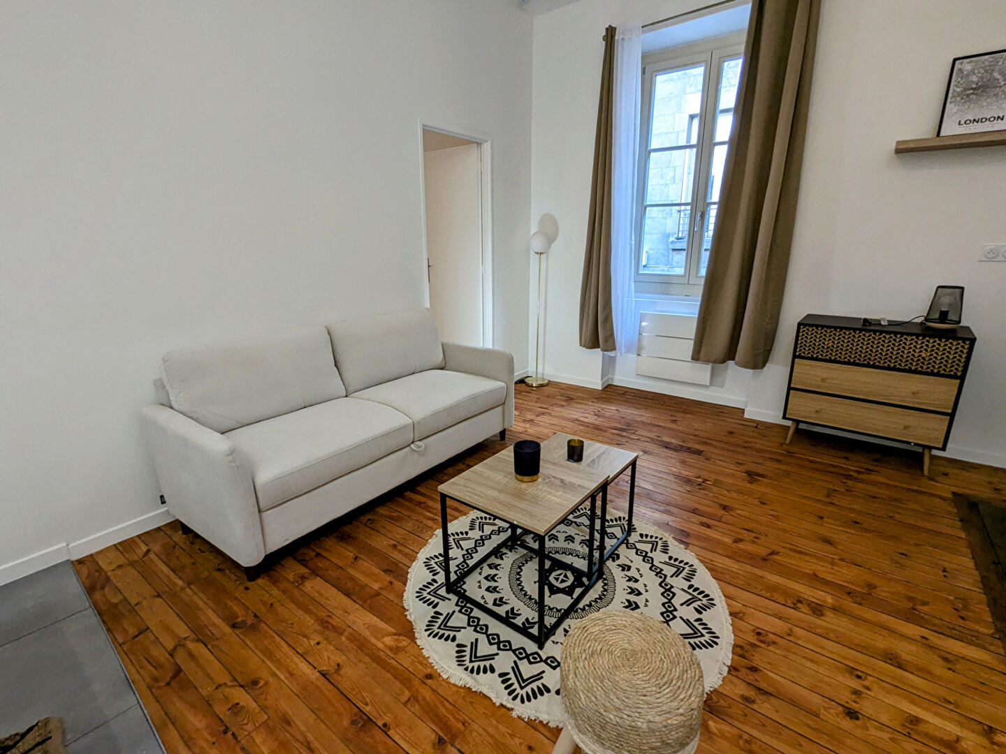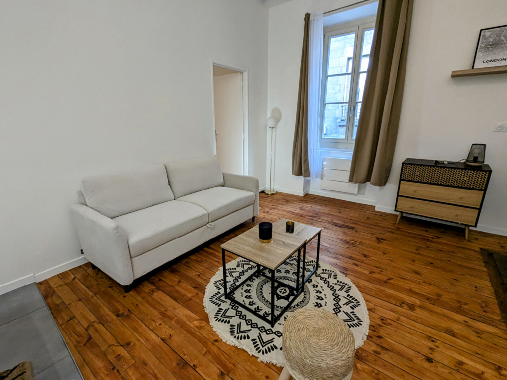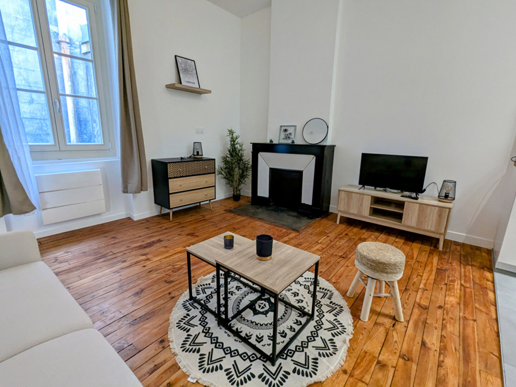 Au 1er étage d’un très bel immeuble ancien, au calme sur cour, magnifique T2 de 52m² entièrement rénové (nouvelle mise en location). Il est composé d’une cuisine équipée donnant sur un grand séjour d’une belle chambre, d’une SDB avec douche à l’italienne et d’un WC séparé.