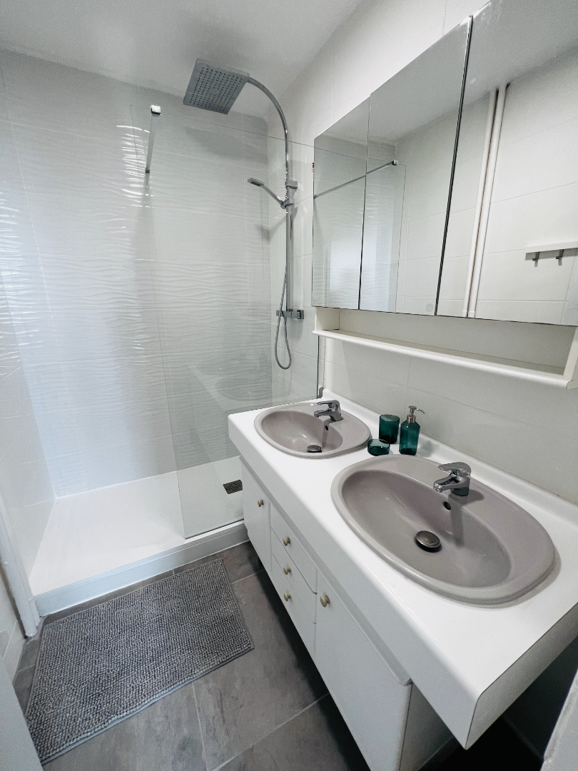 Équipements Les parties communes sont entièrement aménagées avec tout le nécessaire : frigo-congélateur, lave-vaisselle, plaque de cuisson, lave-linge, sèche-linge, vaisselle complète, etc. Les chambres sont également parfaitement équipées : lit, bureau, chaise, placard, et literie.