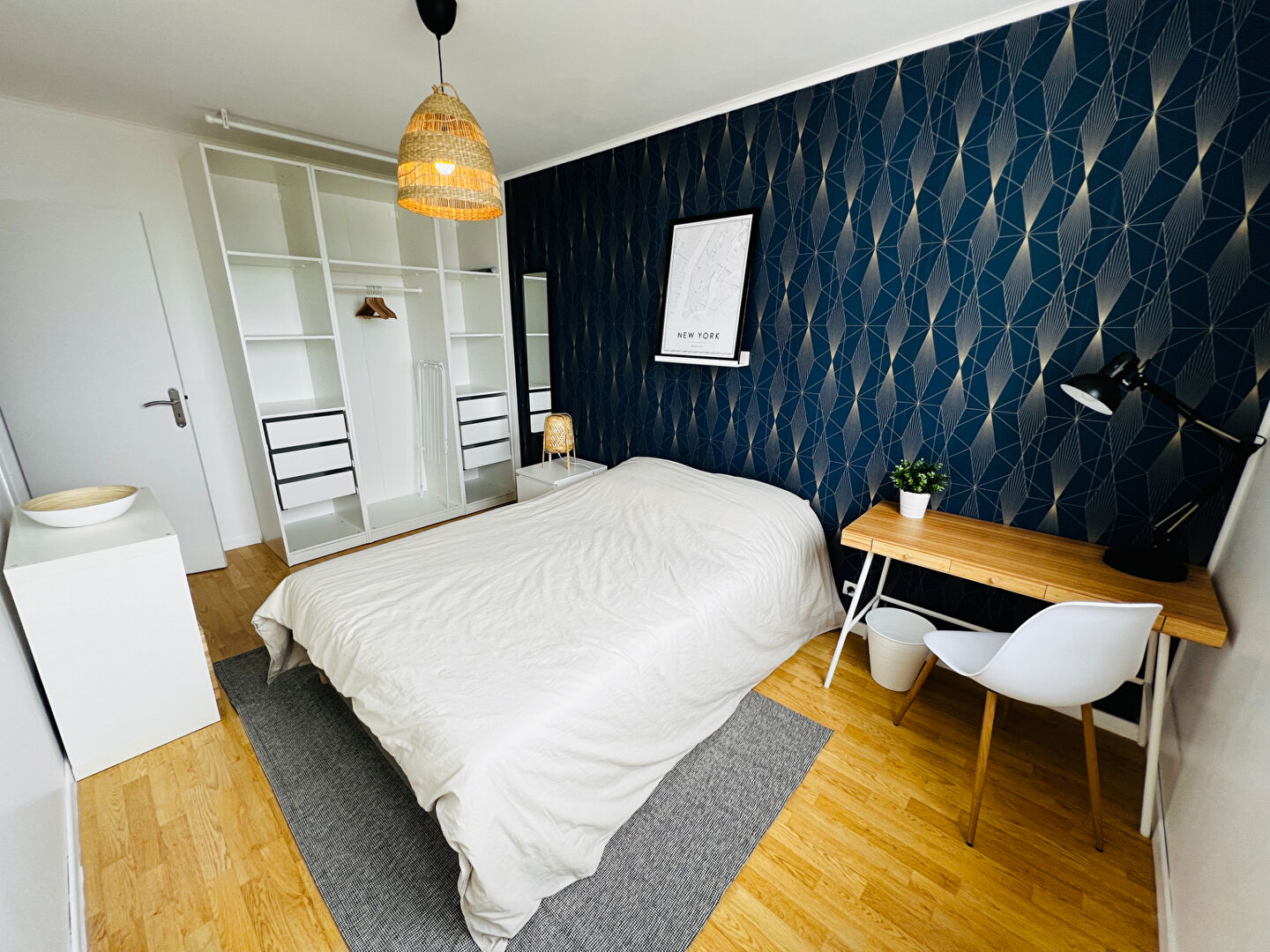 Dans le quartier de Mermoz, à Lyon 8ème, cette colocation de 111 m² propose une chambre à louer dans un appartement spacieux et entièrement équipé, idéalement situé à 5 minutes à pied de la station de tram T4 « États-Unis Viviani ».