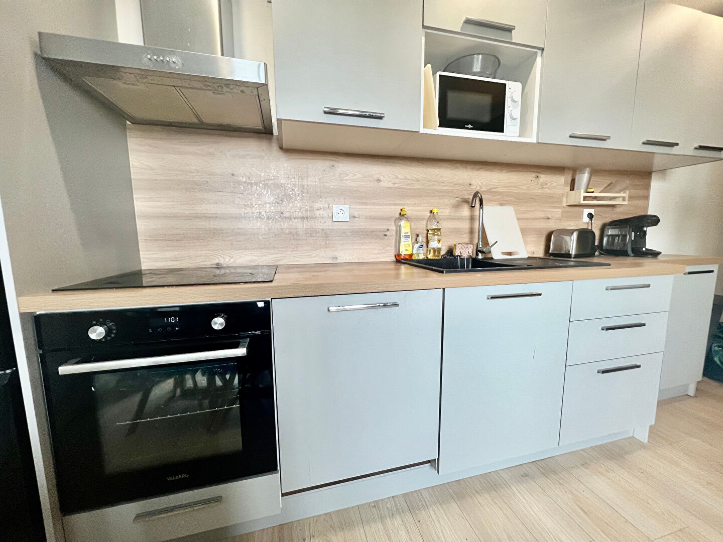 L’appartement est loué meublé et équipé avec soin, aussi bien dans les parties communes (réfrigérateur-congélateur, lave-vaisselle, plaque de cuisson, lave-linge, vaisselle complète, etc.) que dans les chambres (lit, bureau, chaise, placard et literie).