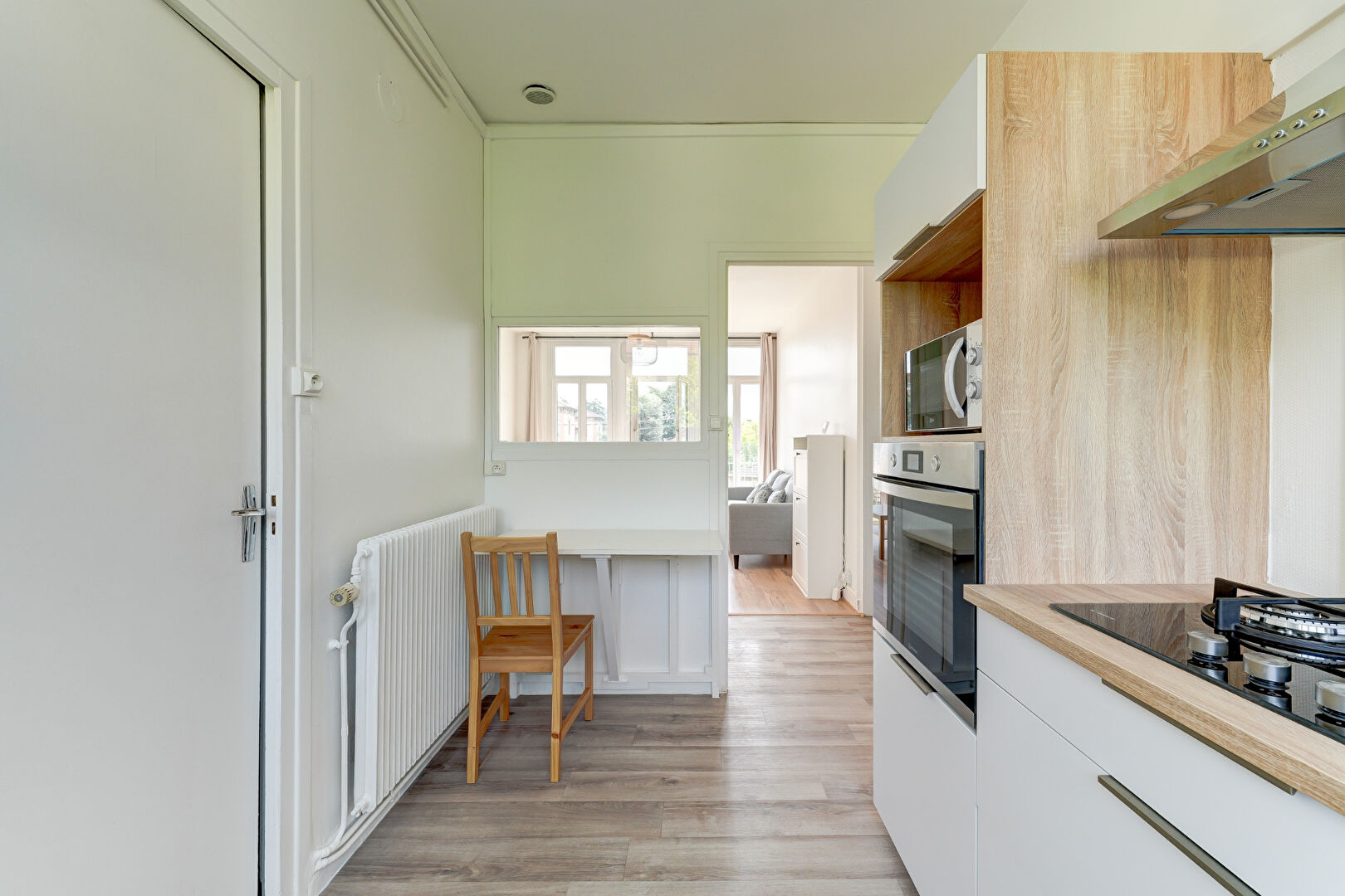 Le logement se compose d’un salon convivial, d’une cuisine entièrement équipée comprenant des plaques à induction, un four, un micro-ondes, un réfrigérateur-congélateur, un lave-vaisselle, une cafetière, une bouilloire, un grille-pain ainsi que toute la vaisselle nécessaire. L’appartement dispose également d’une salle de bain et de WC séparés.