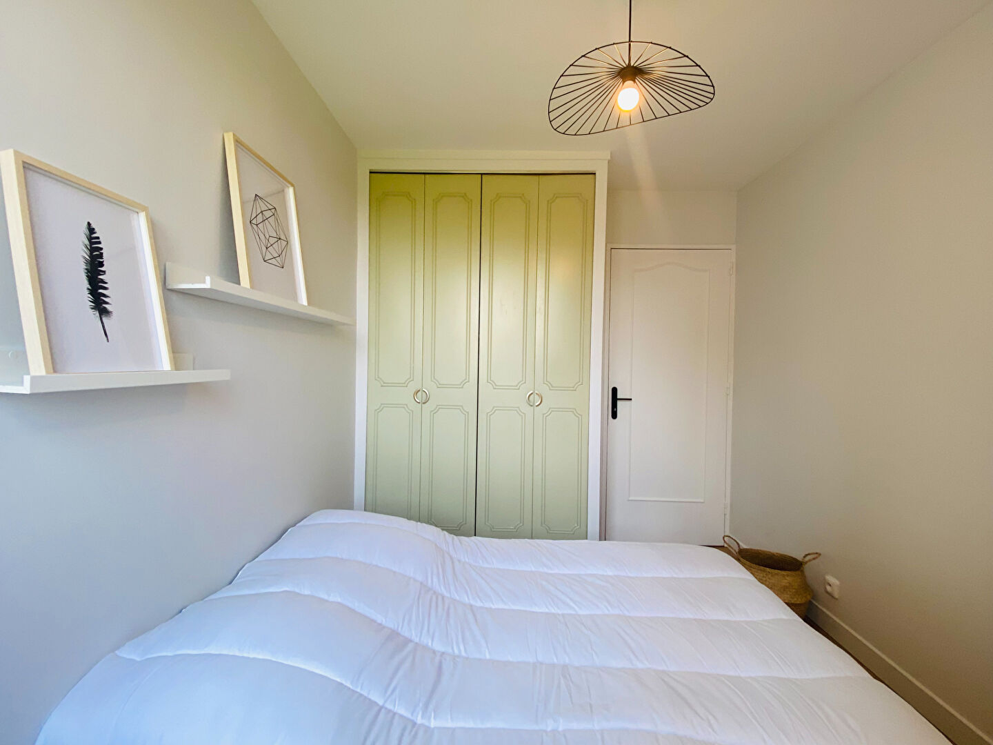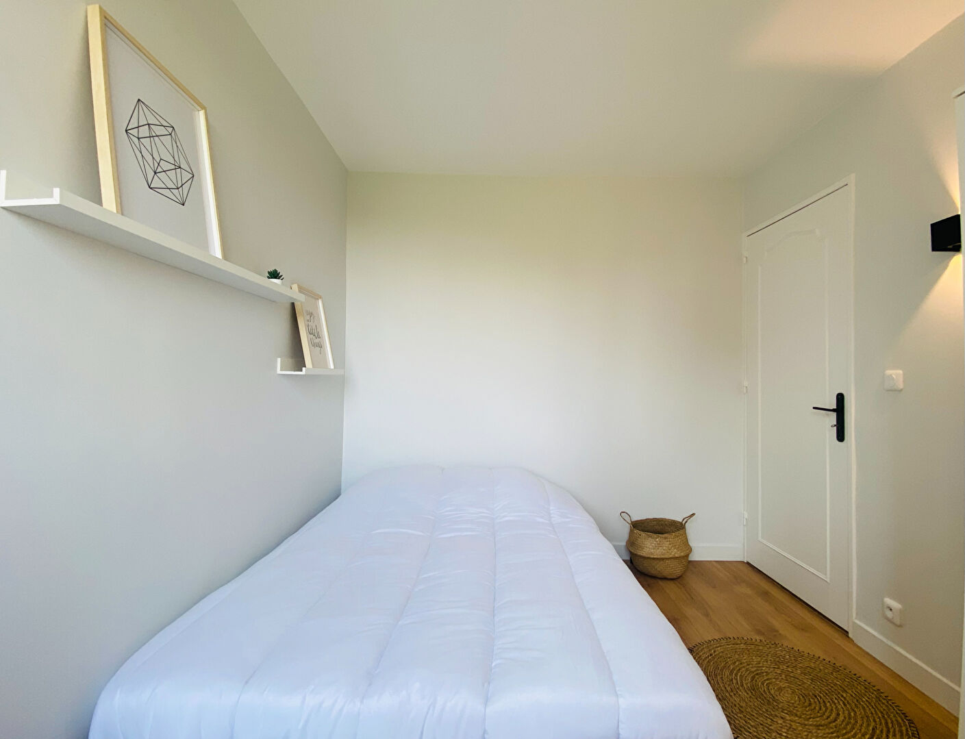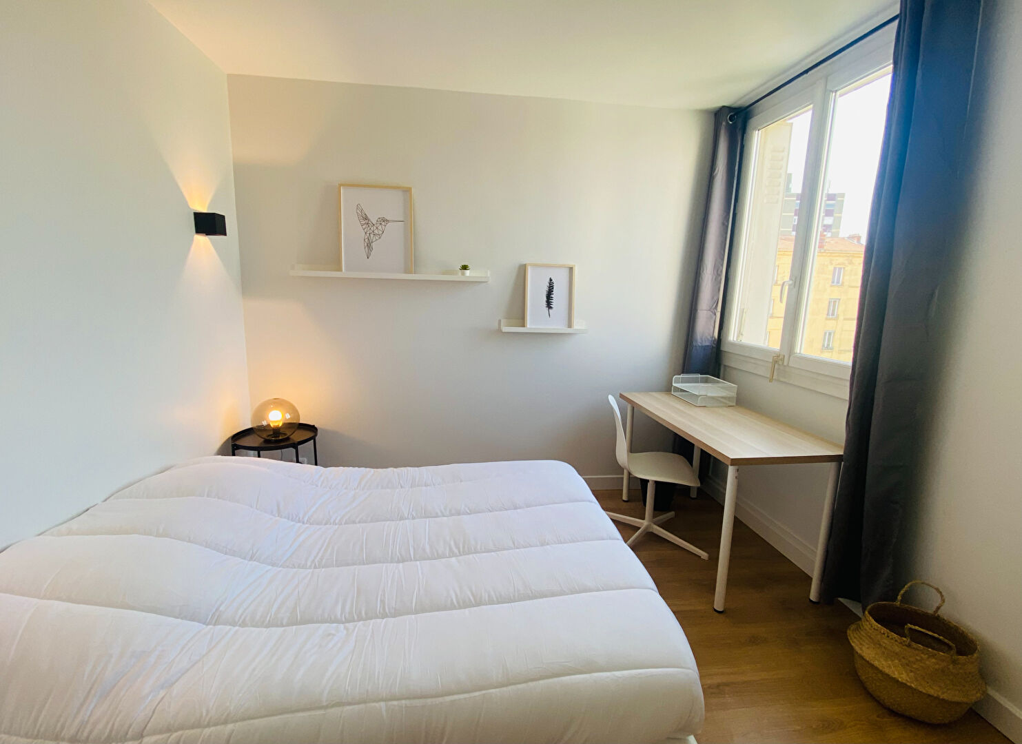 Chambres : lit, bureau, chaise, placard, literie