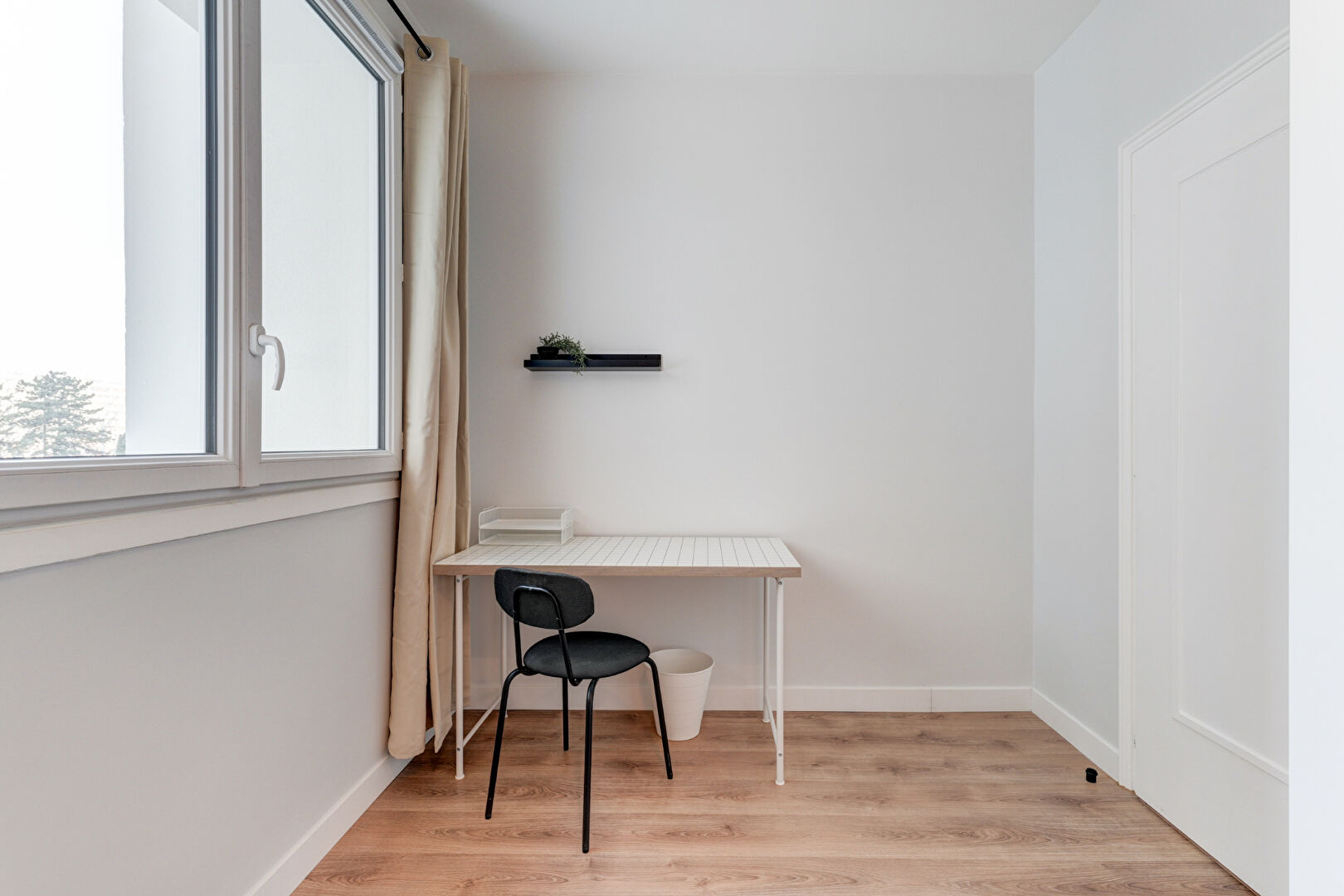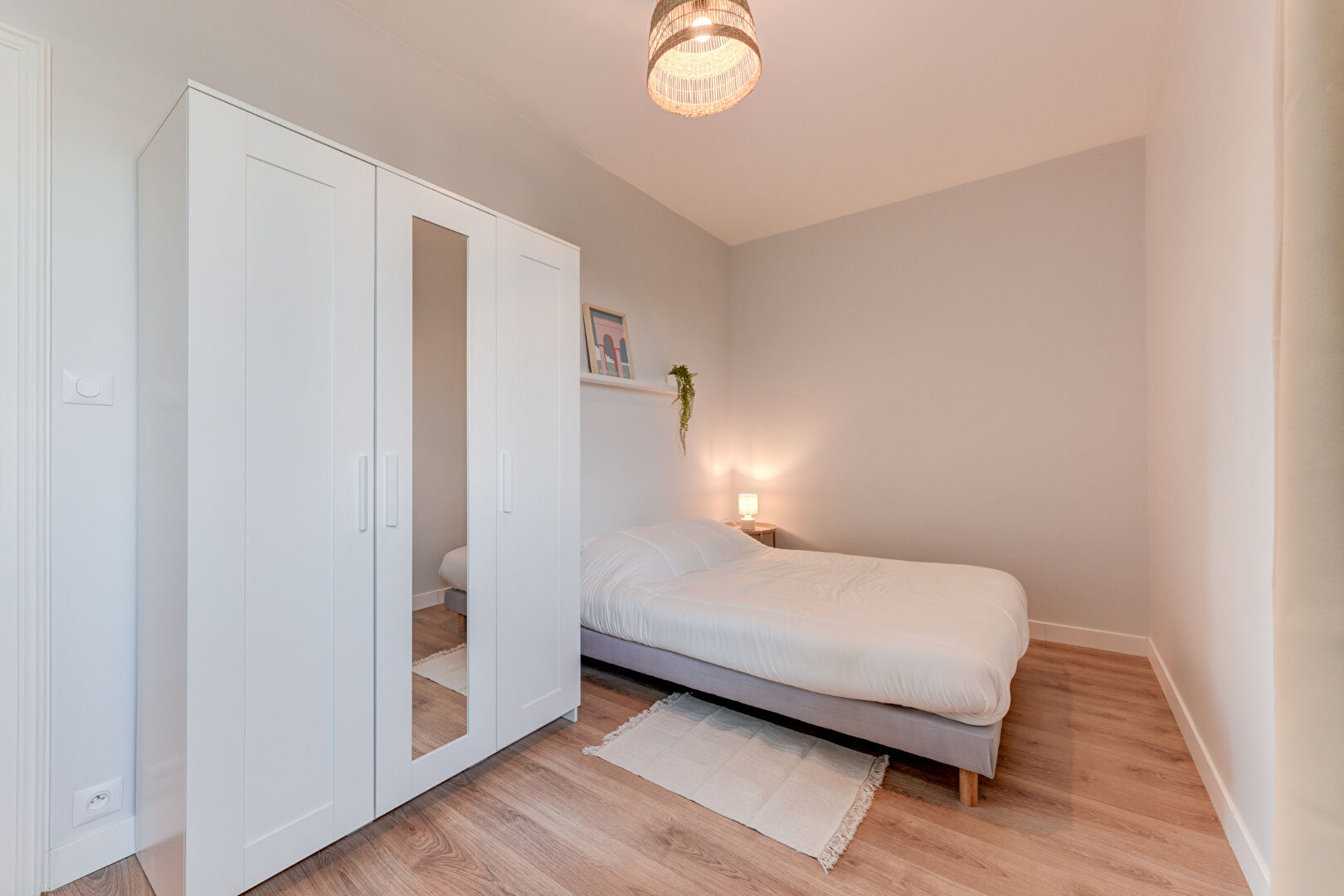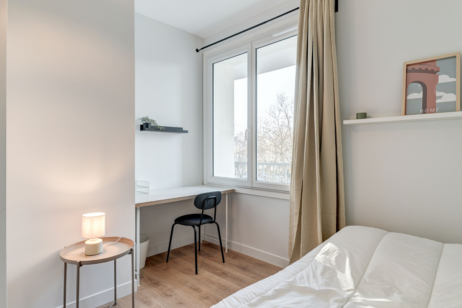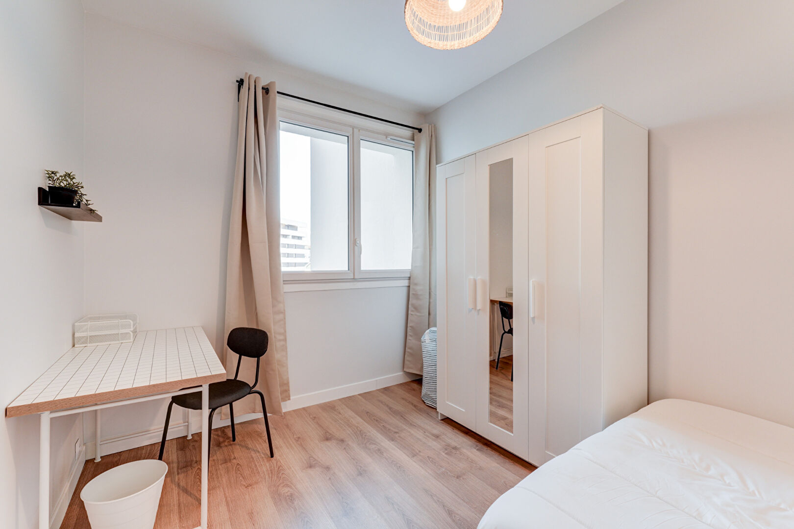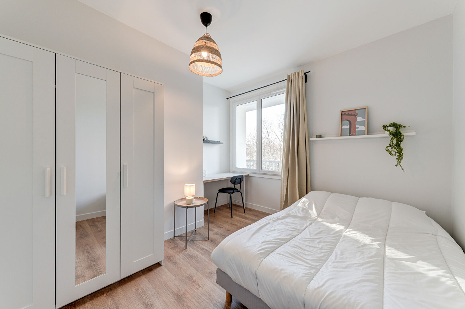 Chambres meublées : lit, bureau, chaise, placard, literie