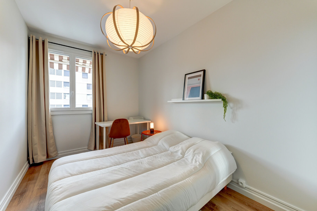 Colocation meublée de 4 chambres dans un T5 de 84,5 m², au 3 étage, résidence sécurisée avec 2 balcons.