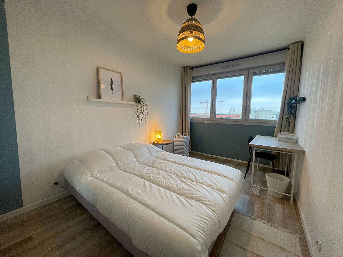 Chaque chambre est entièrement meublée avec lit, bureau, chaise, placard et literie.