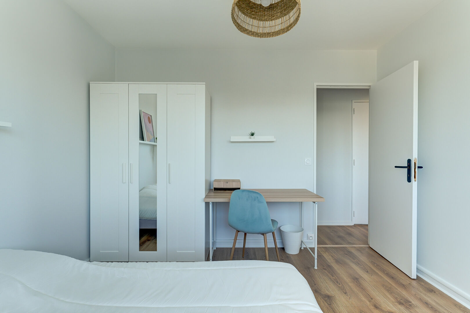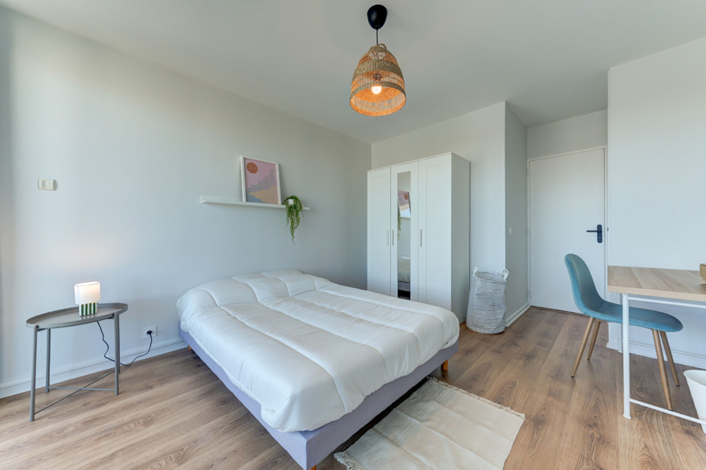 Chaque chambre est équipée d’un lit double, d’un bureau, d’un placard et de literie neuve.