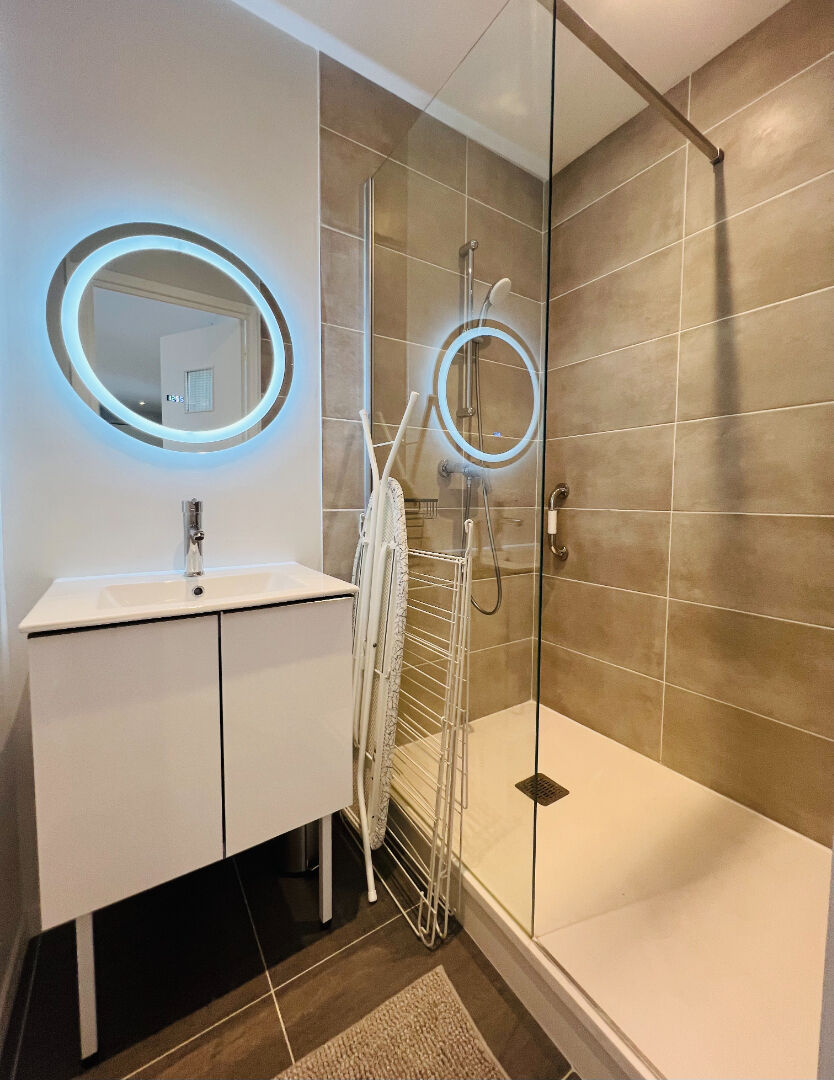 Cet espace est entièrement équipé pour votre confort : réfrigérateur-congélateur, lave-linge, plaque de cuisson, four, micro-ondes, télévision et mobilier moderne.